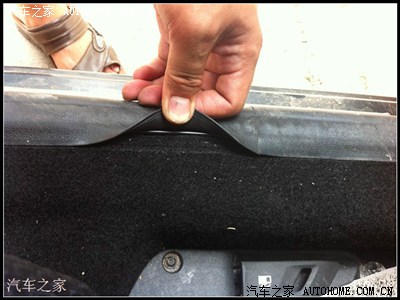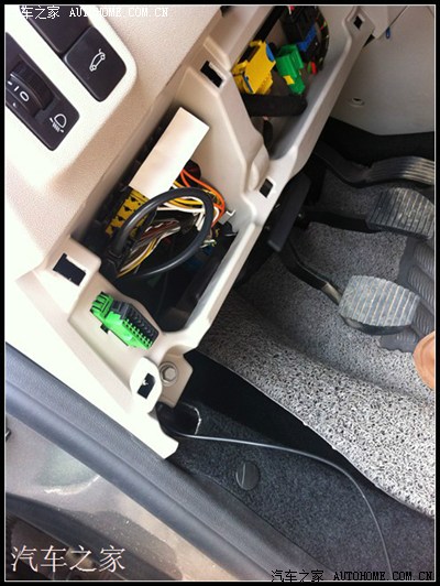 打开方向盘下面的面板,把线放进去,里面是空的,所有可以放到中控导航那里。然后如图把线走在门边的密封条上