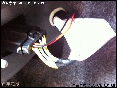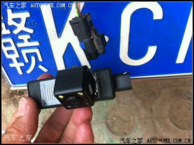 布线的对插接头上还两跟小线,是接倒车灯的,预留出来,接在倒车灯上,倒车灯是插头的最外面两根,粉红的是正极,也可以用电笔测一下。这里一不用破原车的线,如我下图,只需把线插在原车的接头上,注意要固定好就OK了