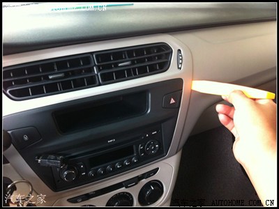 先用工具把原车的收音机给撬开,比较容易拿下来的