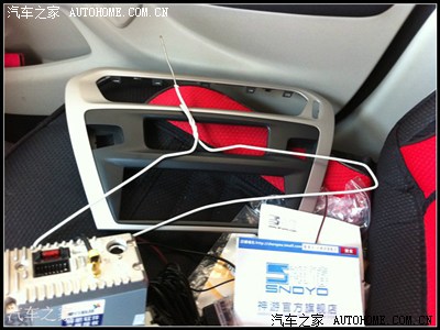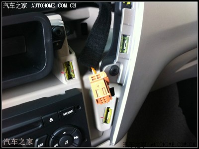 神器出现,买的导航,这种是带和原车贴合的面板的,所有只需把中控锁、双闪灯、空调出风口开关拿下来安在这上面就可以了(这个很简单,黑色的面板感觉挺好看的)。导航配件里有一条线,都是对接的,一头和原车收音机对插,,一头插导航。(这也导航都配有的,插头都是对接的,很容易)