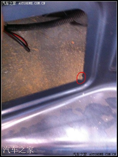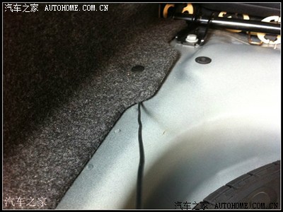 然后把后备箱的隔音棉拆开,如图红色区域内,直接用手可以拧掉螺丝