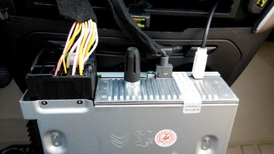 后面的插件,电源和信号线,是个大插件,中间的USB插件,右面的是收音机天线