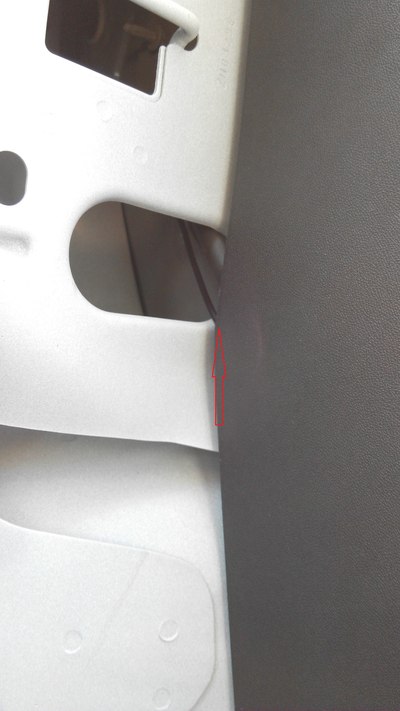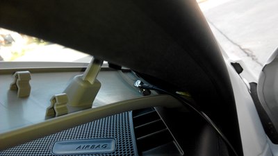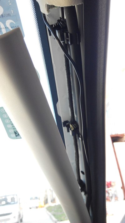拆下A柱的装饰板,可以看到行车记录仪的走线,也很简单