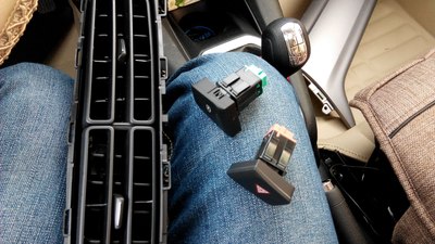 拿下的面板特写,待会要把空调出风口和2个开关拿下来,放到导航的面板上