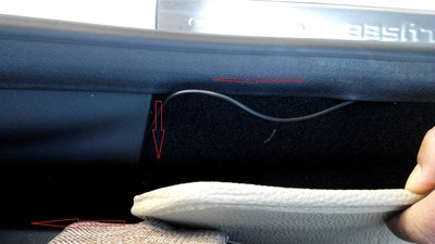 沿着箭头把线藏好,往后备箱走线