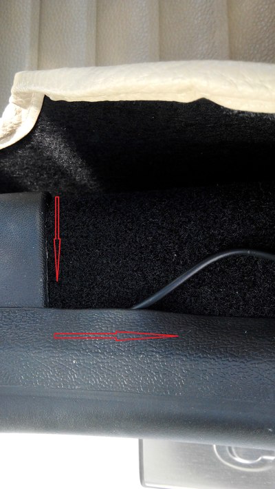 下面开始走后视摄像头的线,把线藏在这个包边里,沿着包边往后排走线