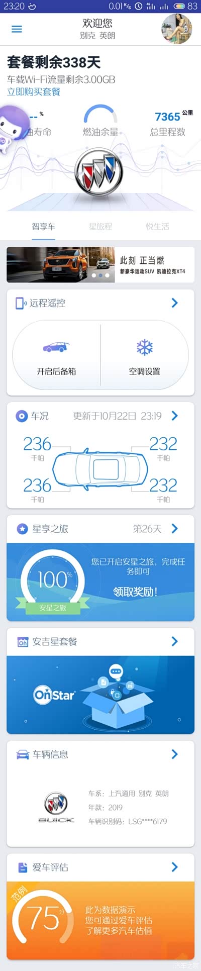 而内部呢,中控屏里面加了很多东西,在线音乐,收音机,股票,违章查询,限行查询等,安吉星也做了升级,远程操作功能更丰富了。