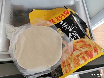 先从冰箱拿出手抓饼,在网上买了很多速冻,水饺,小馒头,手抓饼汤圆等等。