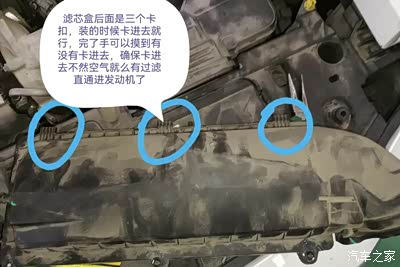 另外报一个猜测◇拆的时候发现上次在店里保养更换的滤芯,通往涡轮增压器的管道右边的螺丝没有拧紧,非常松就拆下来了,稍微扳手转一圈不到几乎可以手拧出来,但是拧紧的时候发现需要扳手转很多圈都还有管道接口的缝隙还没靠紧,目测是店里人员上次换滤芯没有拧紧导致的,真是去年买了个表,开了一万多公里难道一直有一部分进气没有过滤?这岂不是造成发动机进气颗粒物大量吸入导致气缸活塞拉缸磨损?不知道故意的还是工作疏忽大意,这年代还能相信谁不过总归自己换好了,总共5个螺丝要拆,滤芯盒一排三个,连涡轮增压进气管道的两个,其余不需要拆,我看网上有人拆了进气管道扎带的一字螺丝,其实完全不需要。管道右侧螺丝不好拧只能拆了刹车油白色盒子才能放进去手,烦的一批,图片不能编辑就不标记太细了
