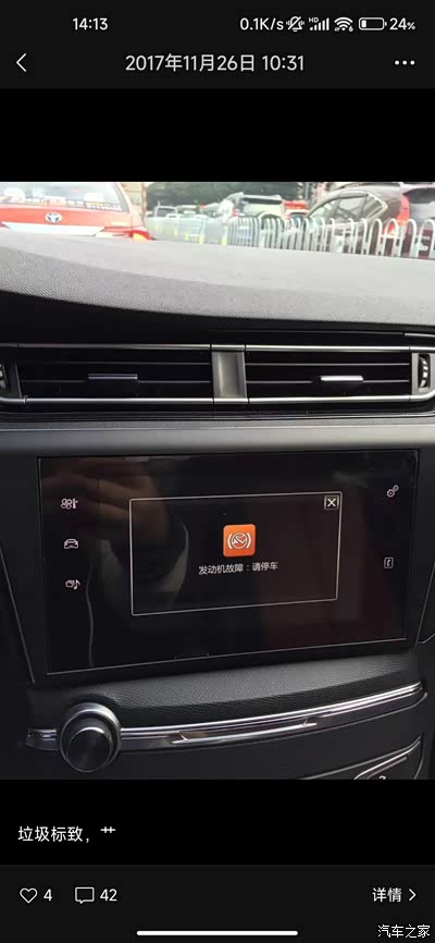 ①17年行驶28000公里时,经常报发动机故障,索赔了进气压力传感器