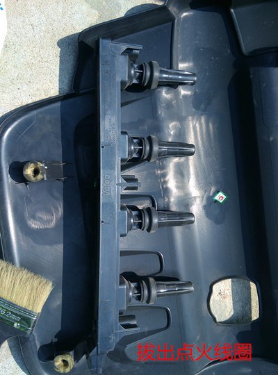 我没拍)手握两端慢慢向上提起点火线圈,顺便扫扫灰尘,买回家就没搞过啊。