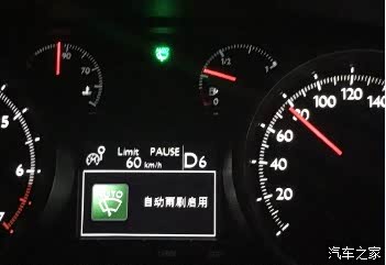 仪表原本功能。。。加装了自动大灯和自动雨刷。。这里同样的会显示。。水箱温度与油箱中间那个亮着的绿色灯是自动雨刷的图标。。。亮着表示自动雨刷启用着。