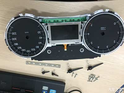 拨掉原车组合仪表单色小屏排线。这个比较简单。一拉就出来了。即使是拨断了也没有关系,因为以后也不需要它了。拨完后把仪表上两长两短的指针旋转至底0刻度的位置。进行下一步拨这四根指针。