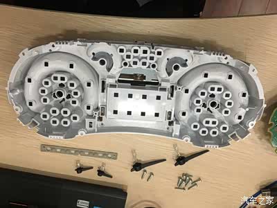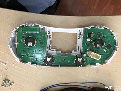 拆下来的组合仪表主板。待会同样也需要对它进行手术工作。。。上面白色的颗粒状的是仪表内的各个部位的前景指示灯(LED的灯珠)