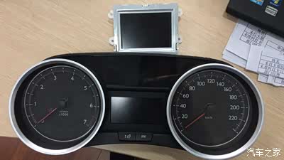 原车拆下来的组合仪表总成正面 与 508 彩屏合影。待会后面的工作主要是为了把小屏放入到原车的组合仪表内,达到与顶配的效果相同。下端的按键目前还没有处理想法。