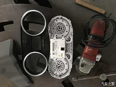 纪念一下原车组合仪表主板的全貌。。旁边红色的是手持式切割机。切割片已装好。等待手术进行。