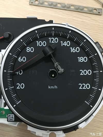 拨下来的速度表上的指针。拨指针这个有点点讲究,不能使用硬的物件去翘它,建议使用塑料撬棍来进行处理。不然黑黑的仪表就会被刮花。落出白色的小鲜肉。![]()