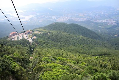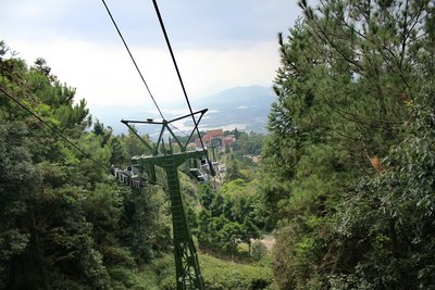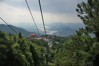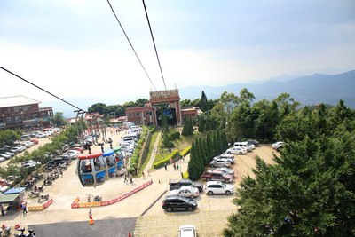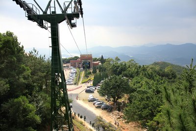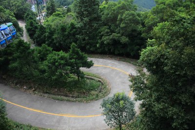 在登山的“仙路”途中左侧,亭为六角形,双亭紧邻连接,俗称“连心亭”。亭盖为黄色琉璜瓦,是游客登山路上小歇及眺望山景的路亭。