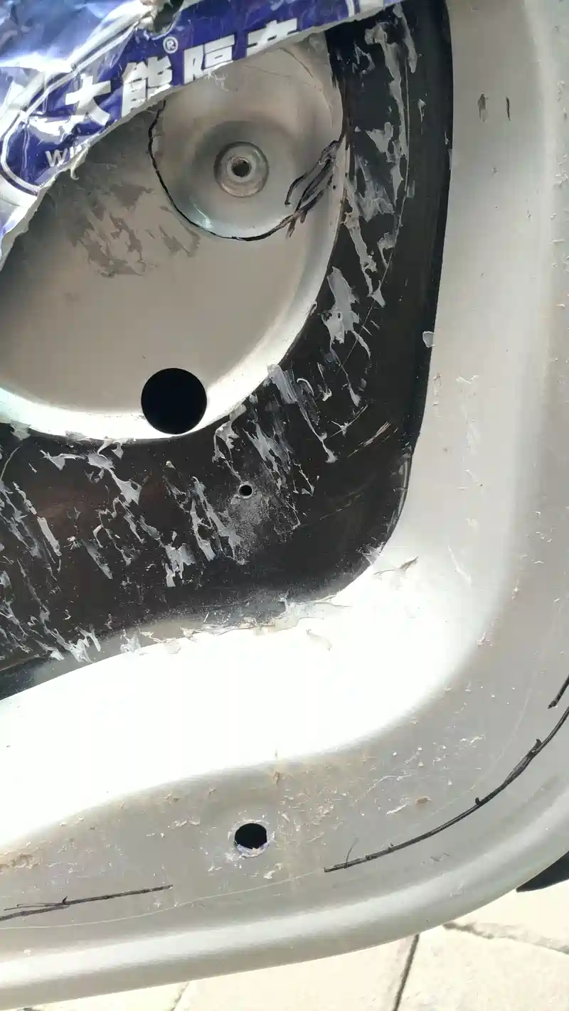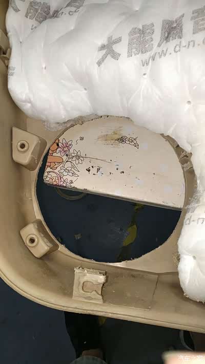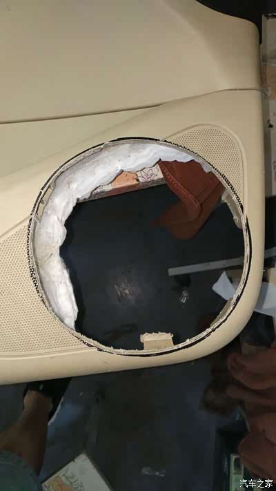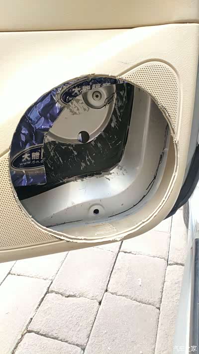 喇叭一侧背后就是门板的储物盒,尽可能不把盒子挖破,否则还要补储物盒。