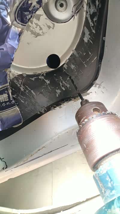 根据之前在金属上留下的位置,取下门板和底座,单独打孔,说实话,307的金属门还是比较结实的,不用两个手按着,不容易钻穿。