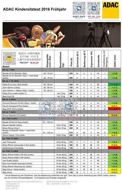 如约为大家呈上最新的【2016春 · ADAC】儿童汽车安全座椅测评的中文版本