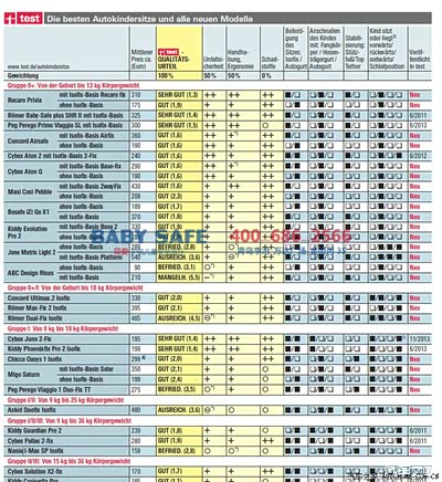 大家热切期盼的Concord reverso/Britax Advansafix 等新品按官方的粗浅的解释是市场表现及采购情况乏力,有可能在后续的测评中会有出现.具体年度的最终成绩还要看每年10月份的Stiftung Warentest的公布.