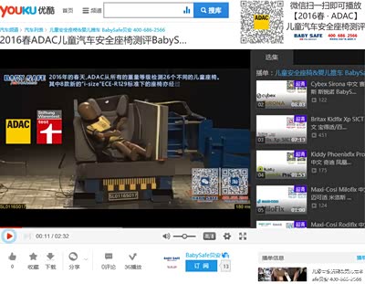 下面是我们在优酷/QQ视频的会员频道中发布的ADAC2016最新视频,在我们BabySafe贝安的会员频道中可以找到各一线品牌全球最新的产品视频的中文译文,以及各单品的使用方法.希望能帮到更多的爸爸妈妈了解全球最前沿的儿童汽车安全座椅的趋势动态.