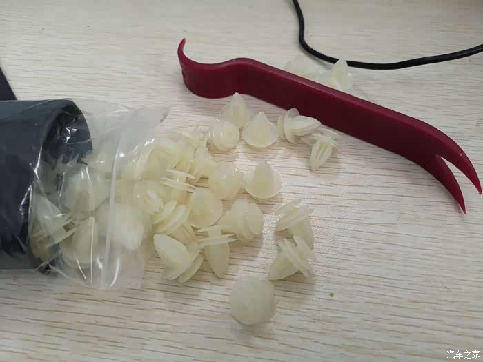 黑色部分,有几个螺帽样的就是卡子了,可以用撬棒辅助弄下来。黑色内饰板中间还有些突起插入白色盖板的,用撬棒辅助一下拉出比较好,否则容易把塑料部分给弄裂开。