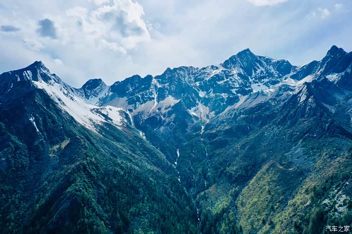 从山脚下往山顶方向行驶,途中会看到不同角度的雪山美景。