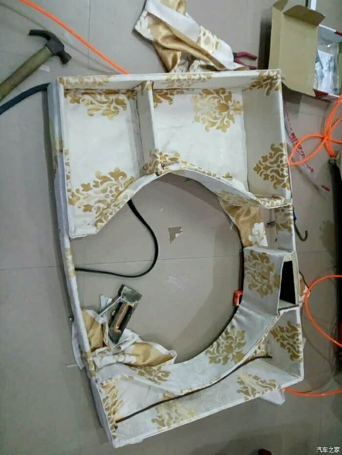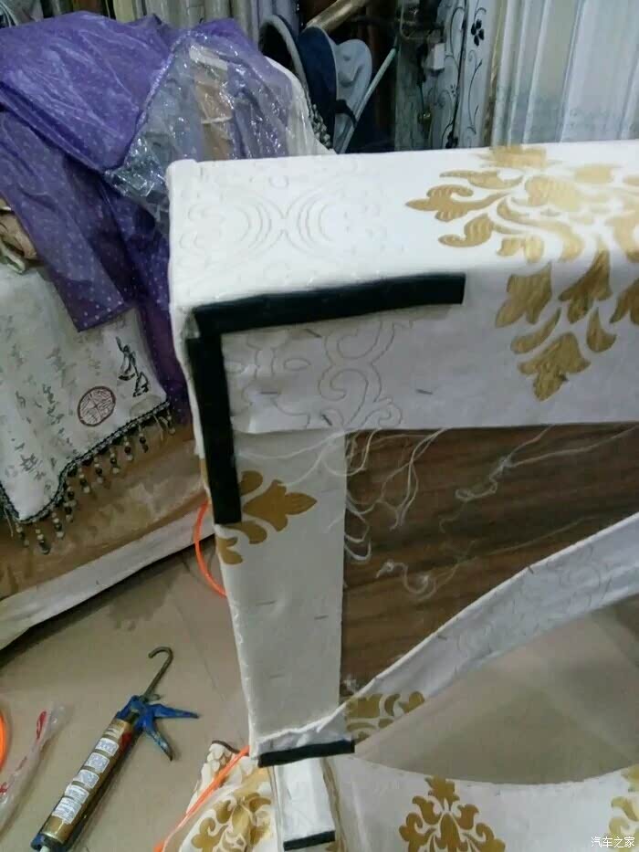 做什么用呢?在盒子四周内外拉上布防止开车时晃动盒子内工具撞击盒壁产生声音!
