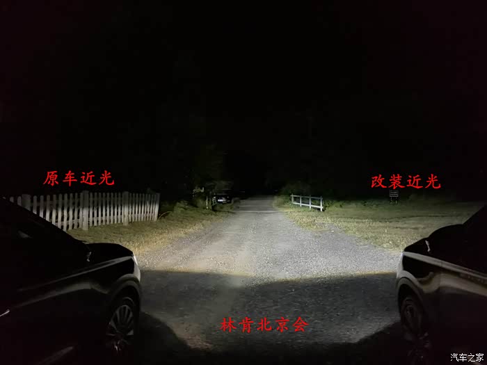 这是在林肯北京会房车体验活动时,在漆黑的户外,我与版主兼会长的车分别打开近光进行对比,原车在左,改装车在右。明显改装亮度提升。