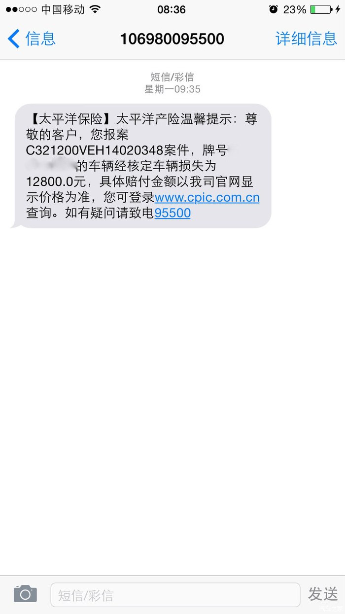 已结案 赔付金额短信已上传