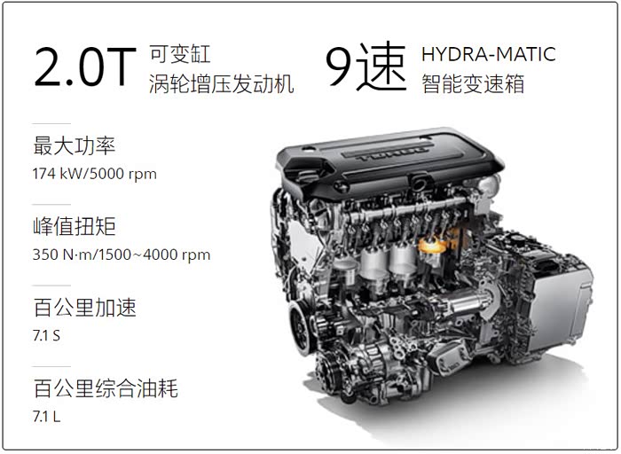 同时全新别克君威GS搭载的第八代Ecotec 2.0T可变缸涡轮增压发动机,拥有众多先进动力科技,例如35MPa高压缸内直喷,双涡管涡轮增压器,以及Tripower可变气门管理技术,在此项技术下车辆发动机根据不同工况在四缸高性能模式,四缸经济模式和两缸超经济模式之间平滑切换。实现低速高扭矩、高速大功率等特点。从而让车辆在不影响加速的同时油耗下架10.8%,百公里综合油耗做到7.1L。配合9速HYDRA-MATIC智能变速箱,让车辆起步和加速响应全面提升,百公里加速仅需7.1秒,实现澎湃、顺滑、高效的动力体验。