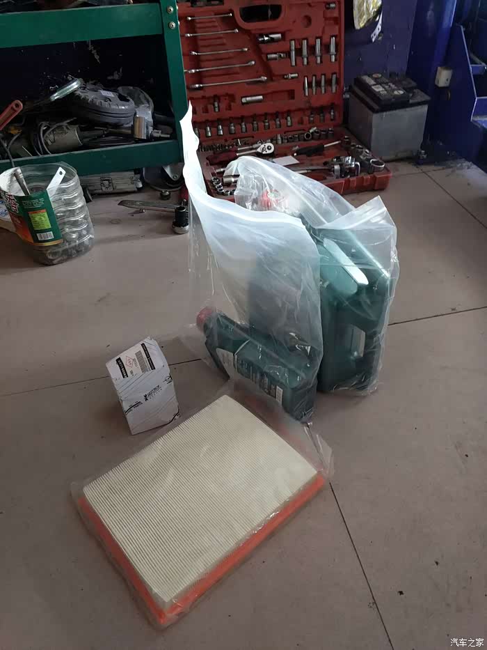 此次保养的全部项目,空气滤芯,机油滤芯,还有嘉实多磁护,大概每次保养需要4.5L机油!基本的保养也是这样,每两次保养或者夏季来临的时候更换空调滤芯,其他的按照正常保养就行!