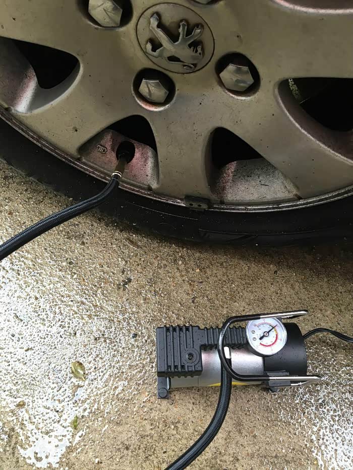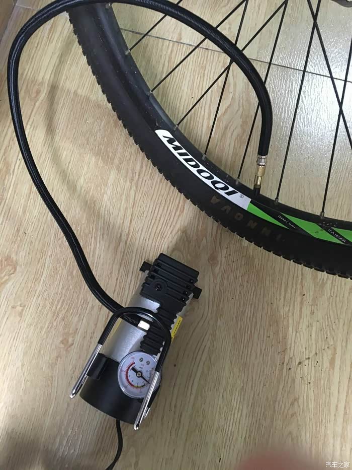 来来来,开测,先试下自行车轮胎。接上气咀马上显数