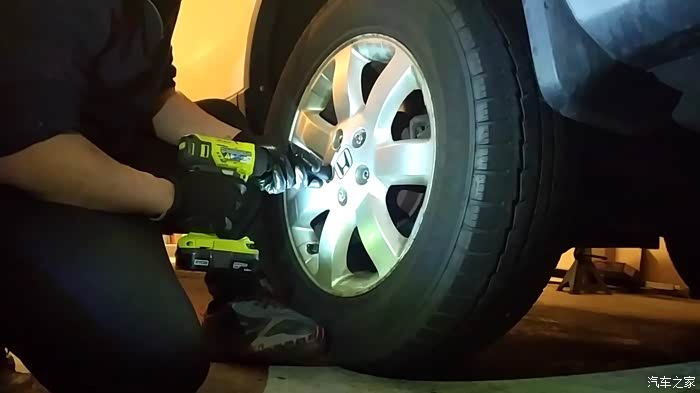 工具上用了新买的电动冲击钻,拆装轮子快了些。但是因为在车库作业,空间有些狭窄,光线也差,大家凑合看哈。