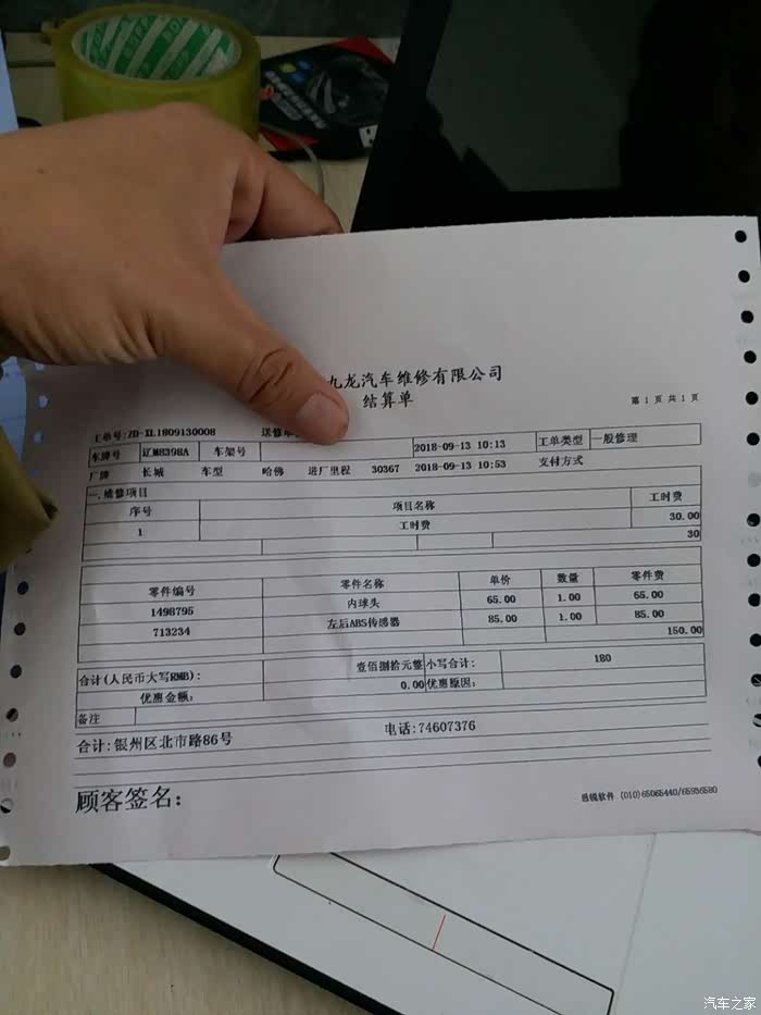 费用:内球头65,传感器85(都比某宝贵)传感器贵过4S都贵