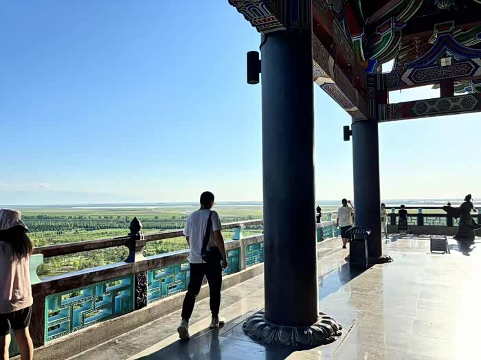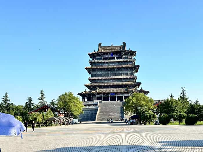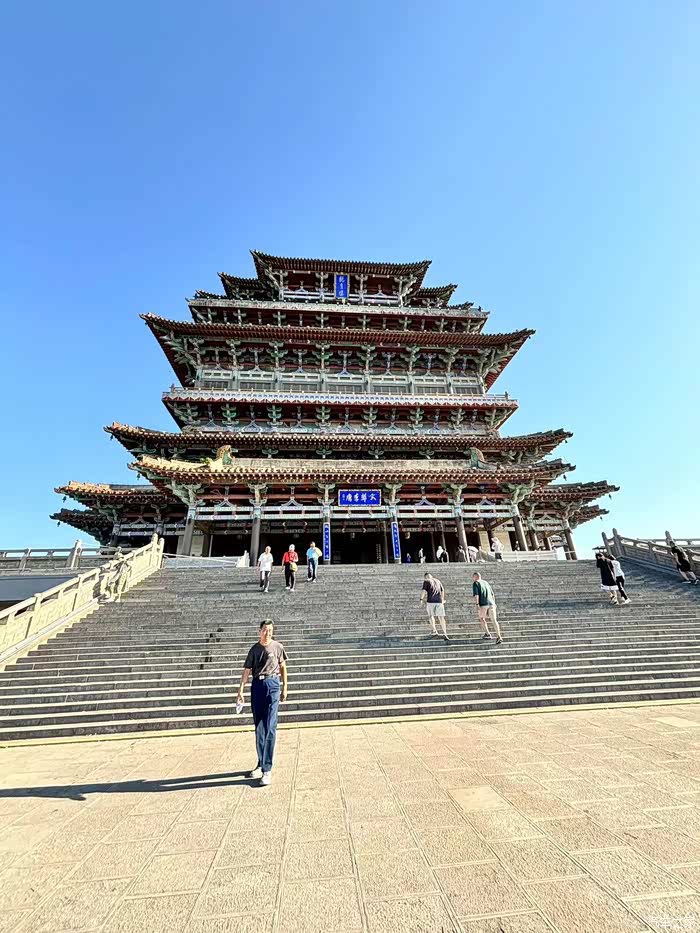 白日依山尽,黄河入海流。欲穷千里目,更上一层楼。——王之涣 这首小学二年级学的古诗,真的是让人记忆深刻。鹳雀楼因鹳雀长期停在上面而得名,就是登上这楼确实能看到黄河,就是看不清楚,加上太阳光太强,看的很难受。门票53,。相比于黄鹤楼,鹳雀楼名气略低,建筑不够华丽,运城的永济市又属于县级市,这里人迹罕至,景区人流少。黄鹤楼上能看到长江,鹳雀楼上能看到黄河。据说鹳雀楼也是经历了大唐的兴衰,毕竟潼关就在附近,潼关是长安的东大门。
