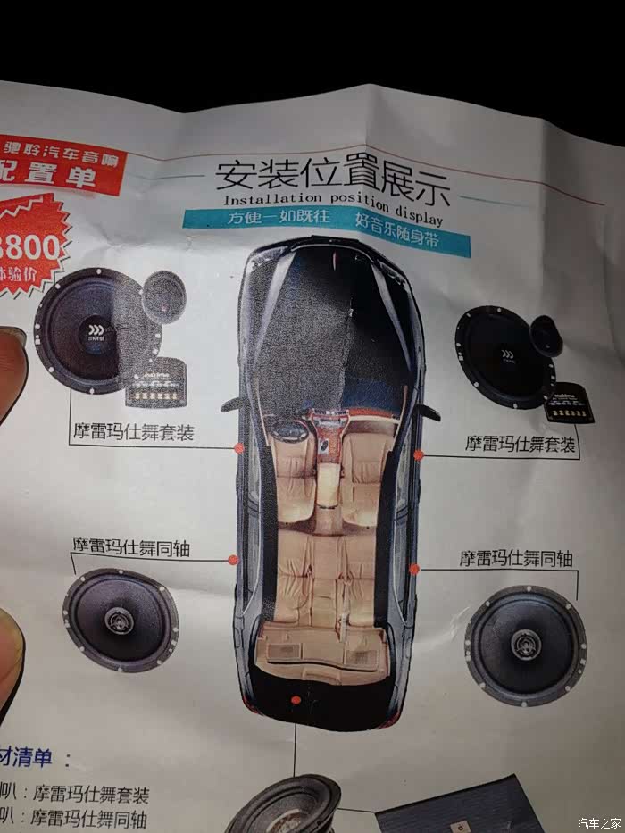 因为导航仪的7850功放的确不错,推原车喇叭就显得有点大马拉小车的感觉,当然原车喇叭也是不错。于是想换换喇叭,在淘宝上搜汽车喇叭,看上一款800多块的所谓哈曼卡顿的8件套,不包安装。正好我家附近有一排修车店,找到一家问帮装喇叭多少钱,说装喇叭最好做门隔音否则效果不好,包装隔音要800~1000元,正好有一家汽车音响店,专做以色列魔雷喇叭的,有一款入门级喇叭玛仕舞8件套包四门双层隔音1800块,并说网上卖的喇叭很多都是高仿的。于是还是觉得买实体店而且包安装不麻烦有真品保证。