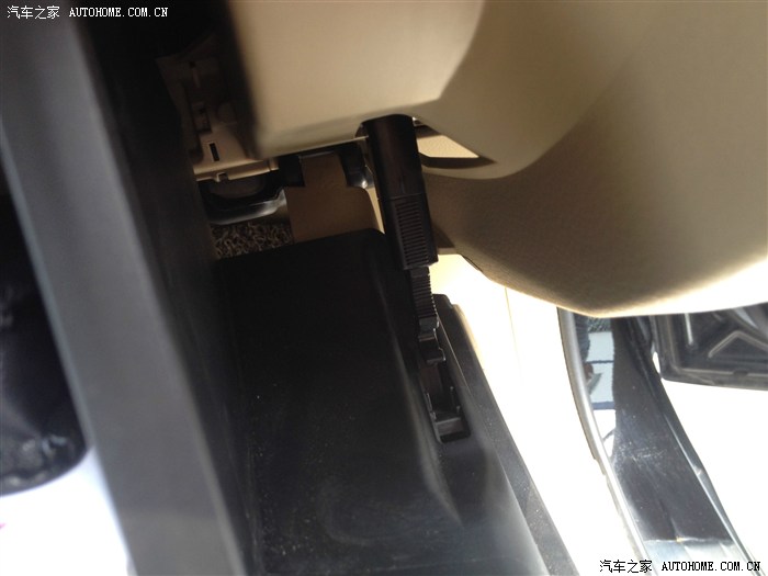 画红圈的位置是手套箱的限位杆,顺着箭头的方向拨动限位杆,把拉杆和手套箱分离