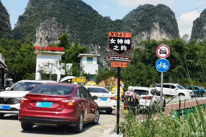 这个标牌的左侧就是进入龙江第一湾停车场的地方,路仅仅可以通过一辆车。