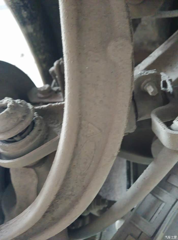 右摆臂下部,太久没洗车了,标识不清晰。