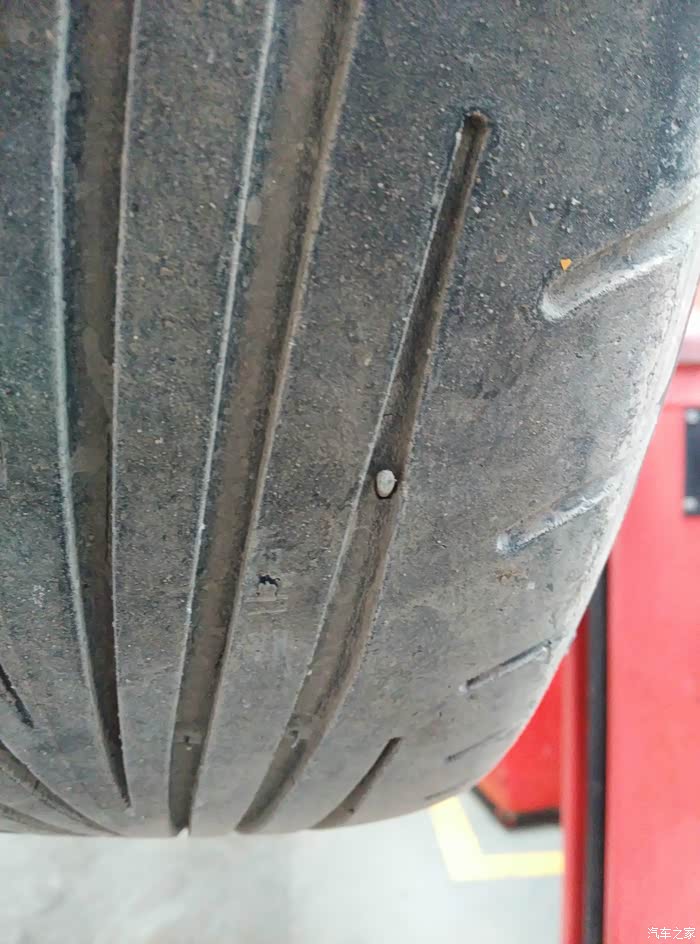 悲催的左前轮,好在没扎透,不然得扒胎了。