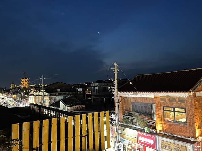 俯身是闹市街区,仰首是星空弯月,夜晚的微风也正好