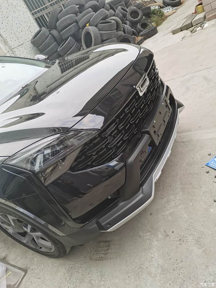 安装之前其实还试了一下,黑银款式的前后包围和踏板,但是比较下来还是全黑的套装完美。
