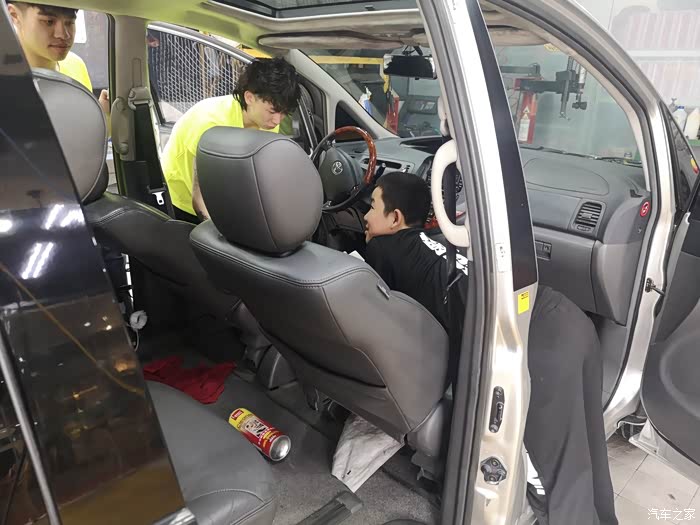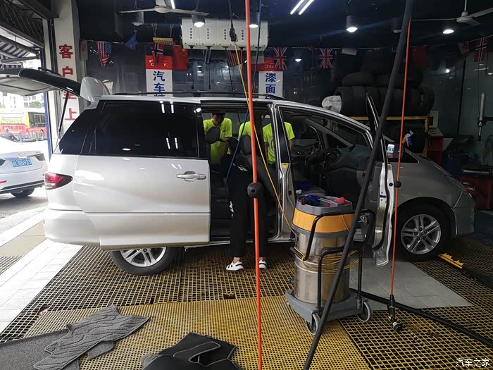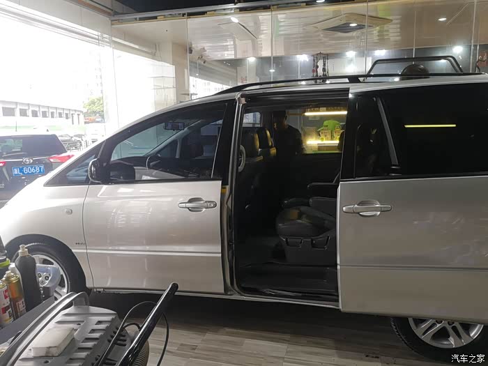 再拉到美容店,内饰清洗,空调清洗杀菌,塑料件翻新,真皮保养,原车顶太脏新包麂绒。