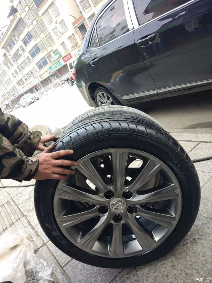 三、改装17寸原厂轮毂:总感觉2014款卡罗拉有种头重脚轻、小脚的味道。通过逛论坛和看改装贴,觉得也改下15 寸轮毂。通过分析15寸和16寸轮毂大小区别不大,还是觉得上17寸比较有视觉效果。轮胎大小选择215 45 R17,轮毂变大,胎厚变薄,整个外径和15寸大小一样,只是胎宽多了2公分。