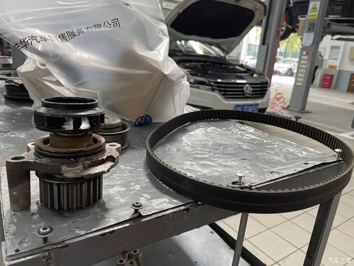 拆下来的水泵和正时皮带