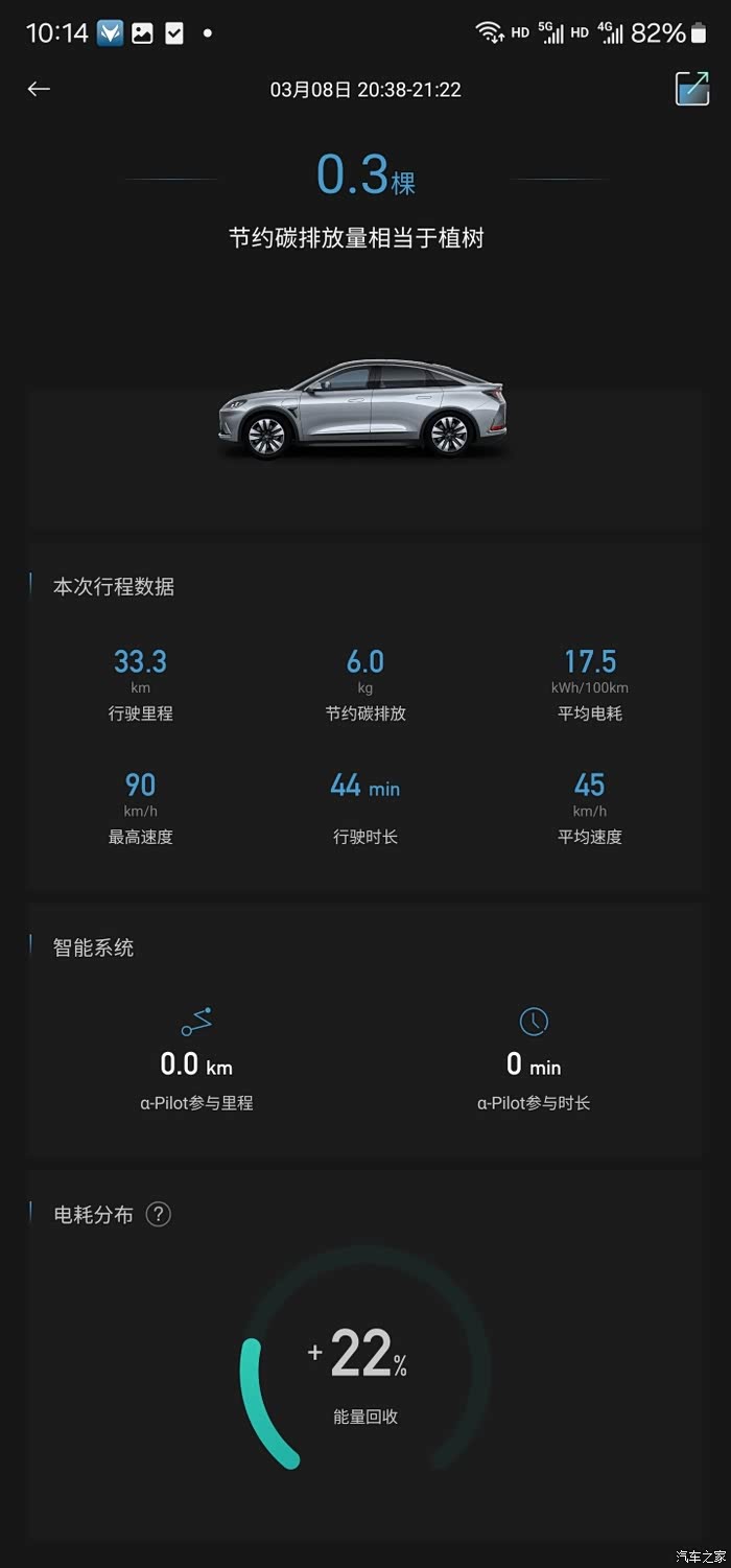 春天到了,天气也暖和起来了,我的极狐阿尔法S的电池活性也苏醒了过来,变得活力充沛。电车开到第三年了,平常已经没有关注电耗的习惯了,这次周末回乡,特地关注了一下车子的电耗,基本上维持在 15-17 kWh/100km,相比冬天,低了不少,对于一个2吨多的大家伙,极狐汽车的这个电耗也算可以,当然另外一方面还得取决于驾驶习惯。最近刚好植树节道理,是时候得让我的果园再壮大一些,可以吃水果的同时也能吸收二氧化碳。这2年开电车后也减少了碳排放,根据后台统计数据,开30km左右的话,节约的碳排放量相当于植树0.3棵,那我上下班一天就是0.6棵,一个月就是18棵,减少地球温室气体增加,保护我们赖以生存的环境。