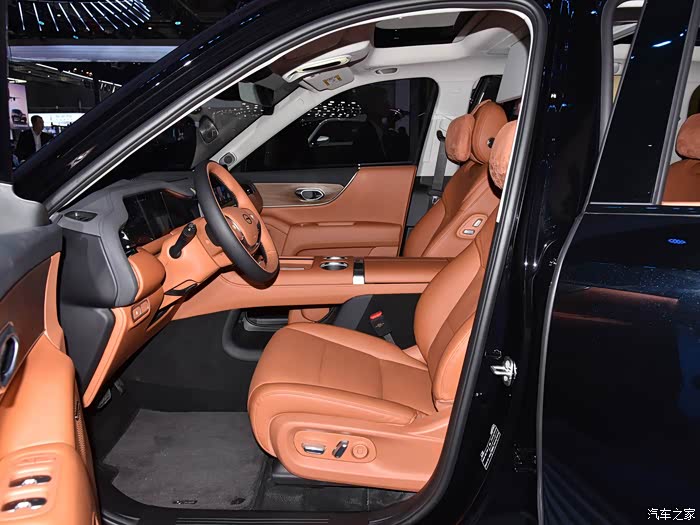 内饰选用黑胡桃木等实木材料,既环保又自然,全粒面超柔真皮触手可及,质感亲肤,空间宽敞简洁之风,材质用料对标欧洲轻奢,进线现代奢华格调。